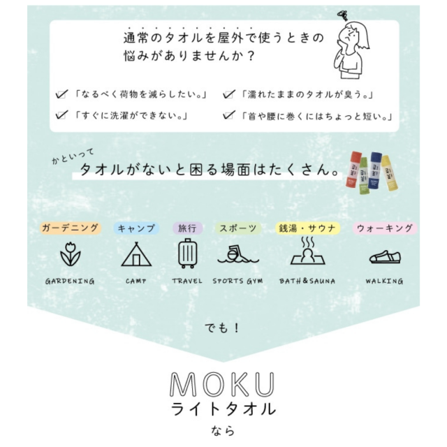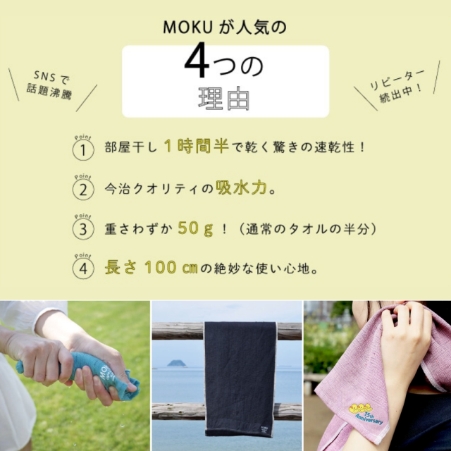 | 製品名: | MOKUタオル サウナタオル 今治タオル コラボ限定 15周年記念 タオル KONTEX × 風呂ふた満足館 速乾 軽量 100cm フェイスタオル 限定5色 |