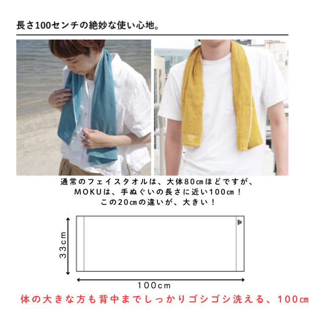 長さは、一般的なタオルより長めの100cm(背中まで楽々届きます)